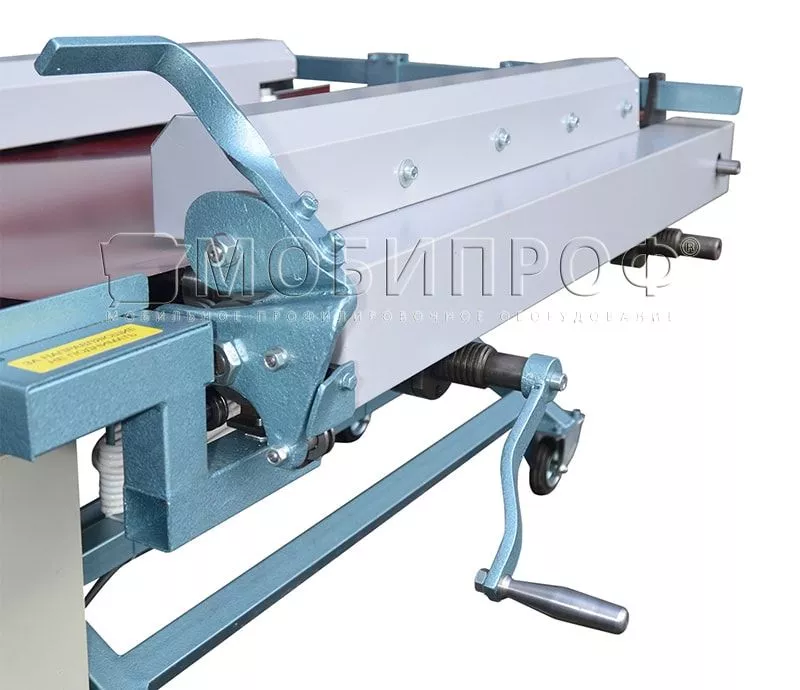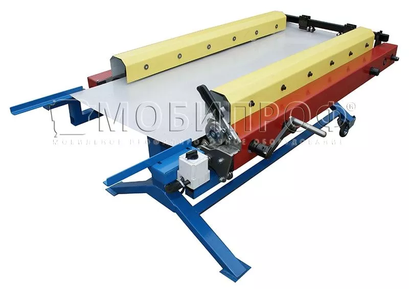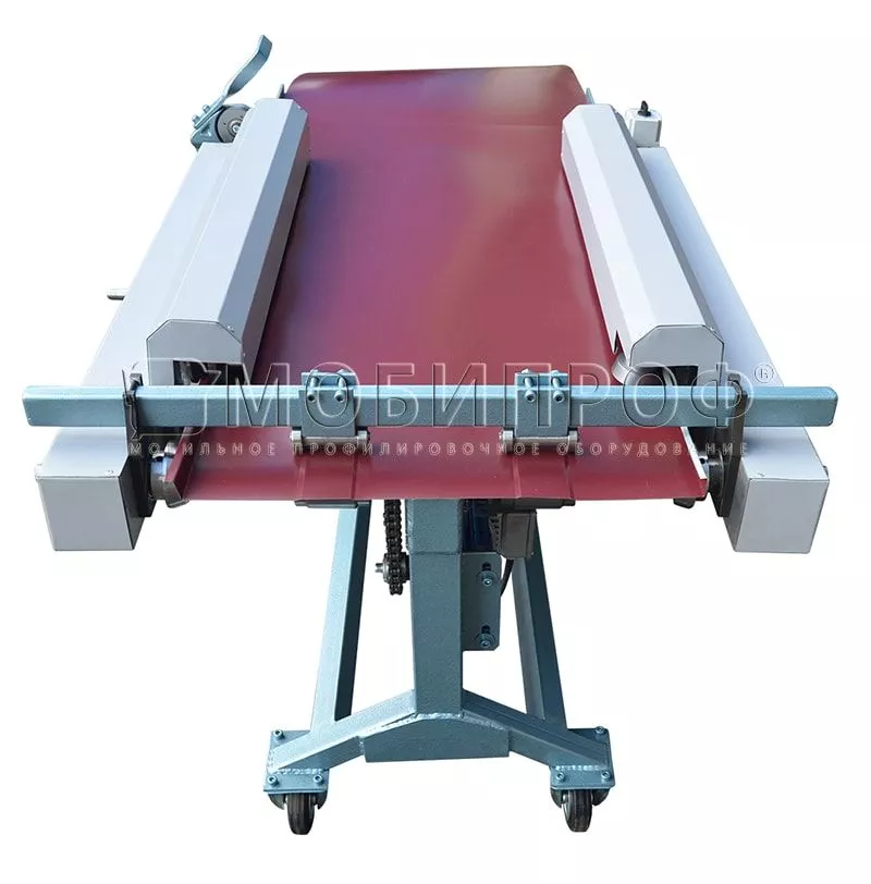 Цеховой кровельный станок МОБИПРОФ СФПР производит панели для фальцевой кровли с двойным стоячим фальцем прямой и трапециевидной формы, а также с односторонним фальцем. Станок оснащен быстрой бесступенчатой регулировкой ширины заготовки в пределах 320* - 700 мм. При вращении рукоятки при помощи двух винтовых пар происходит синхронное перемещение подвижных кареток с профилировочными роликами.