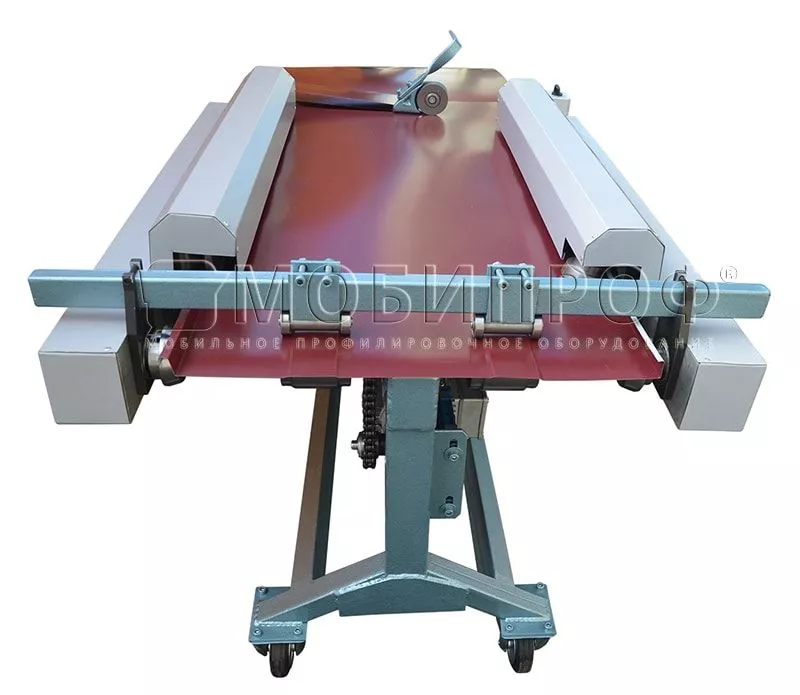 При работе на стройплощадке кровельный станок МОБИПРОФ СФПР обслуживает до двух бригад одновременно. Для удобства транспортировки и перемещения на объекте станок снабжен дополнительной парой колес. Для обеспечения безопасности кровельщика и защиты профилировочного механизма станок комплектуется защитными кожухами.